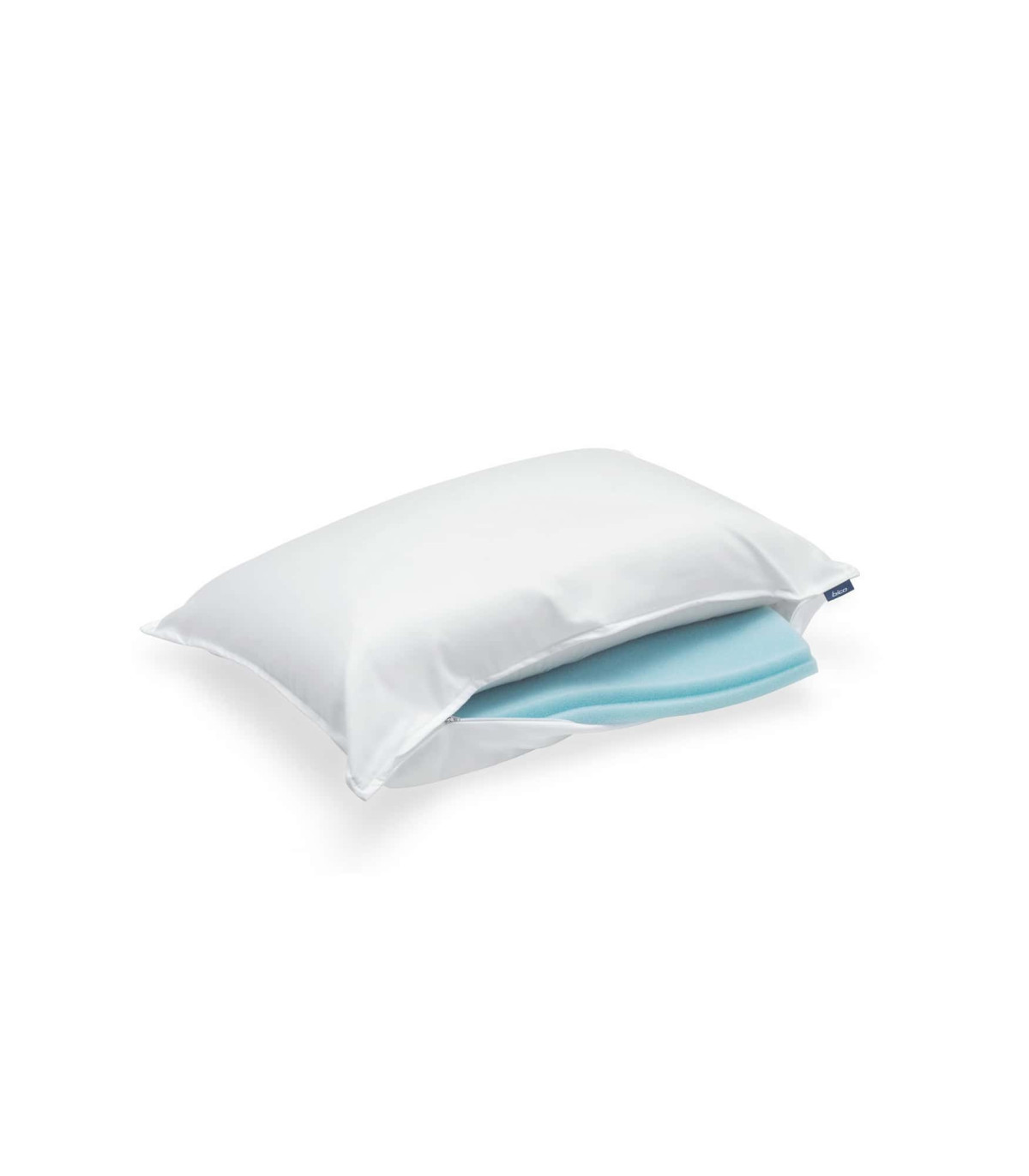 Der Kissenbezug sollte einmal jährlich in der Waschmaschine gewaschen oder chemisch gereinigt werden. Dieser lässt sich mittels Reissverschlusses abnehmen und – je nach Hinweis auf der Etikette – bei bis zu 60 °C waschen. Entfernen Sie vor der Wäsche alle Kernelemente.