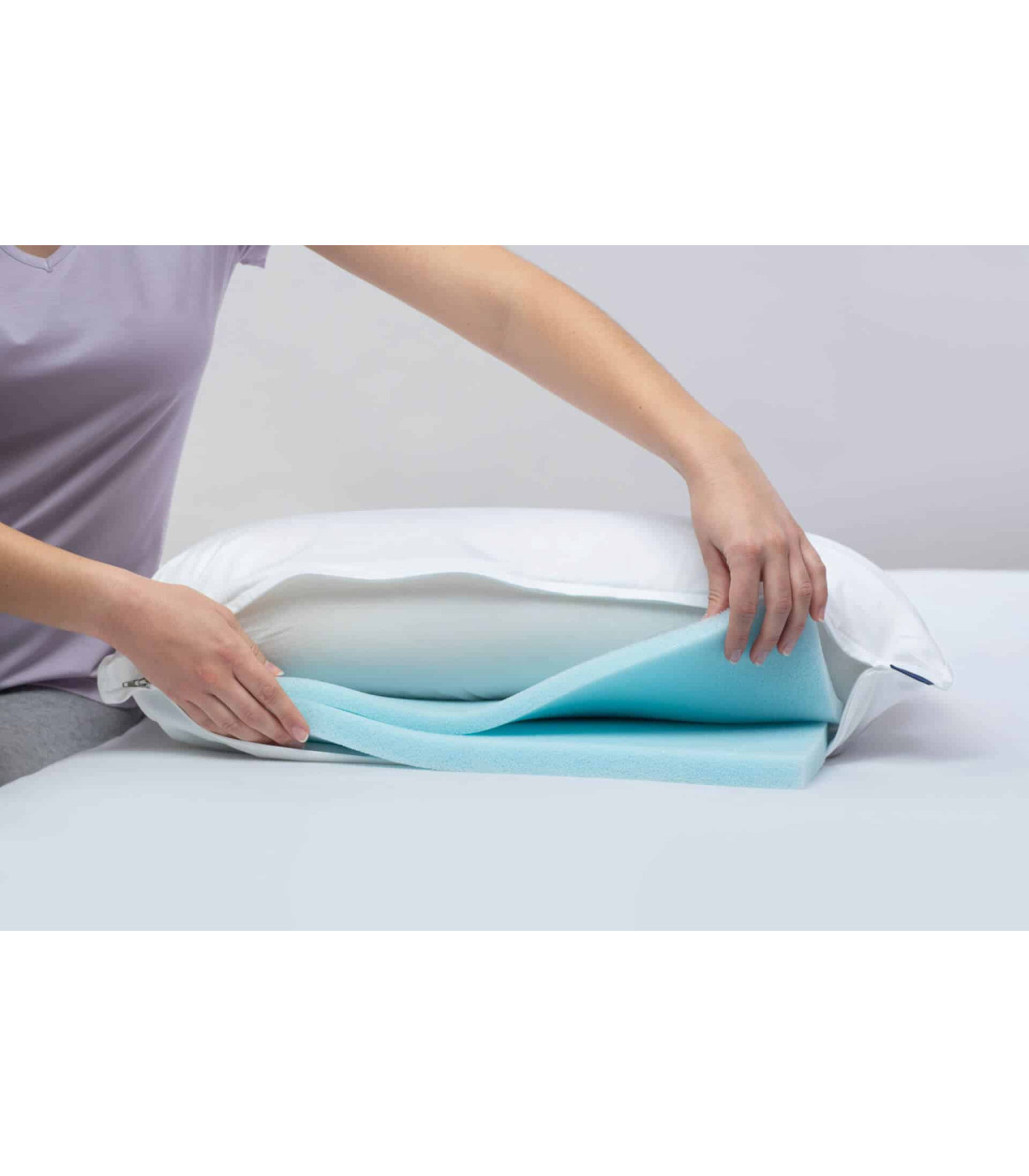Kern aus perforiertem HybridFeel-Spezialschaum mit zwei Einlegeplatten aus Gelschaum (1.5 cm und 2.5 cm)