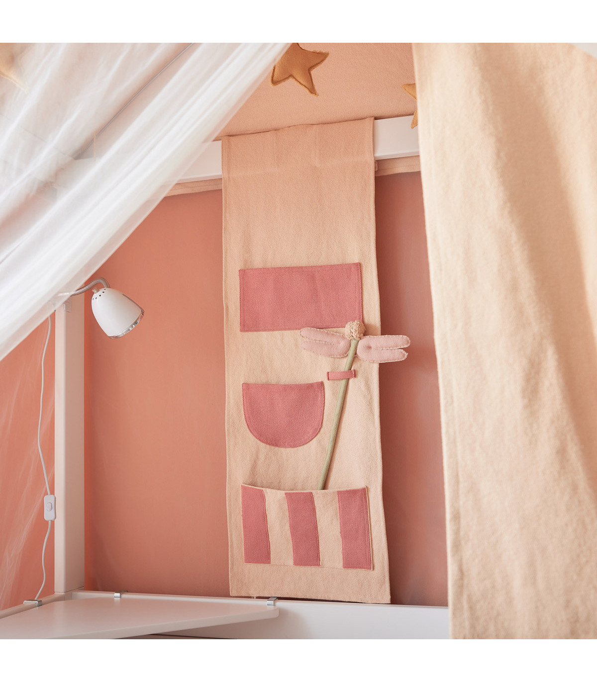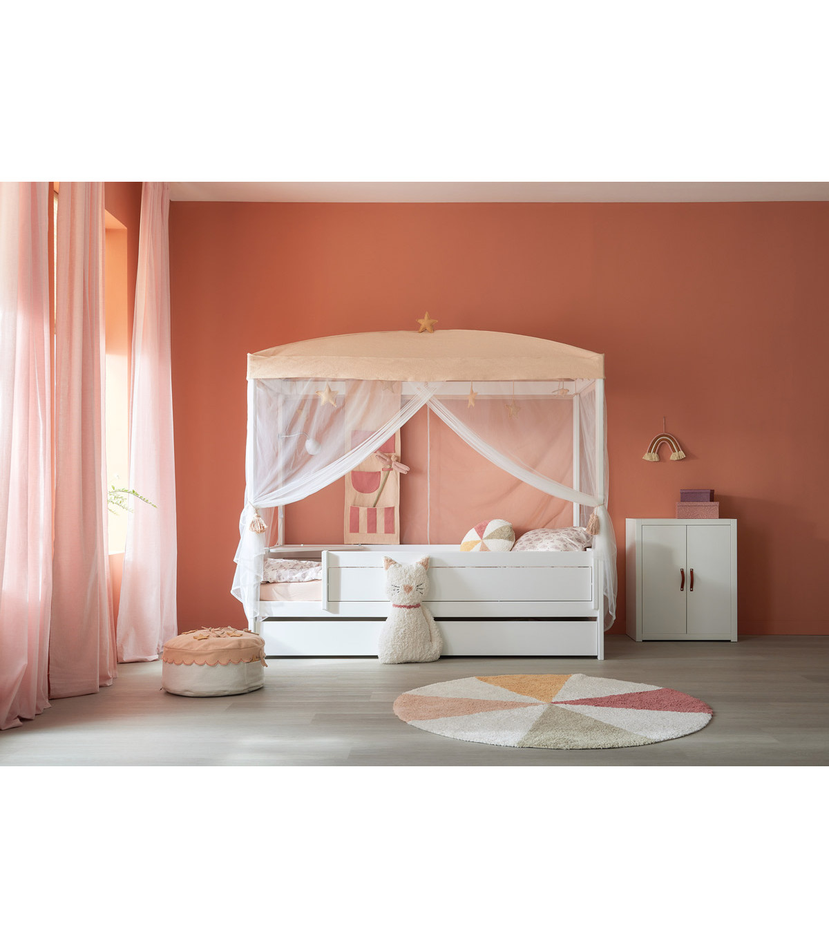 Der wunderschöne Himmel „Fairy Theatre“ verwandelt das Bett in eine zauberhafte Oase. Ausgestattet mit einem Sternenaufsatz und dekorativen Sternen- und Libellenaufhängern, schafft er eine magische Atmosphäre. Der Baldachin wurde in Zusammenarbeit mit Lorena Canals entworfen und besteht aus hochwertigem, natürlichem Baumwollstoff, der mit leichtem Netzstoff kombiniert ist. So wird das Bett nicht nur zum Schlafplatz, sondern auch zum Spielplatz für kreative Abenteuer.