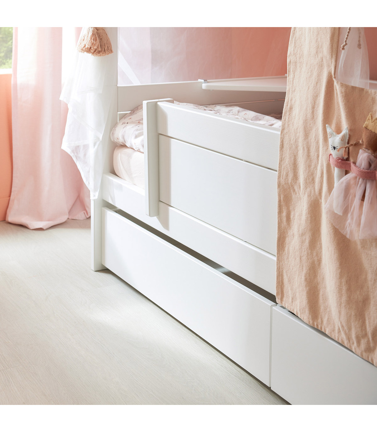 Das Bett ist mit einem Standard Lattenrost ausgestattet und kann durch verschiedene Umbauteile individuell angepasst werden. Ob als Hochbett oder mit zusätzlichem Zubehör – das Lifetime Einzelbett wächst mit den Bedürfnissen Ihres Kindes. Gestalten Sie gemeinsam ein einzigartiges Traumzimmer, das zum Spielen und Entspannen einlädt!