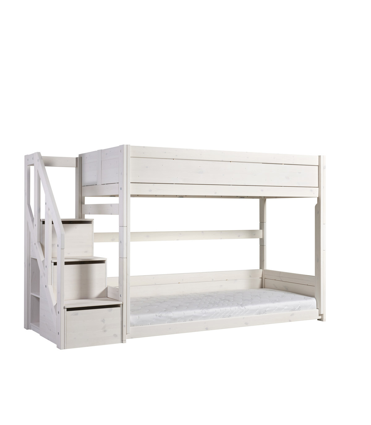 Lifetime niedriges Etagenbett mit Trittleiter 120/120 x 200 cm, Deluxe-Lattenrost whitewash