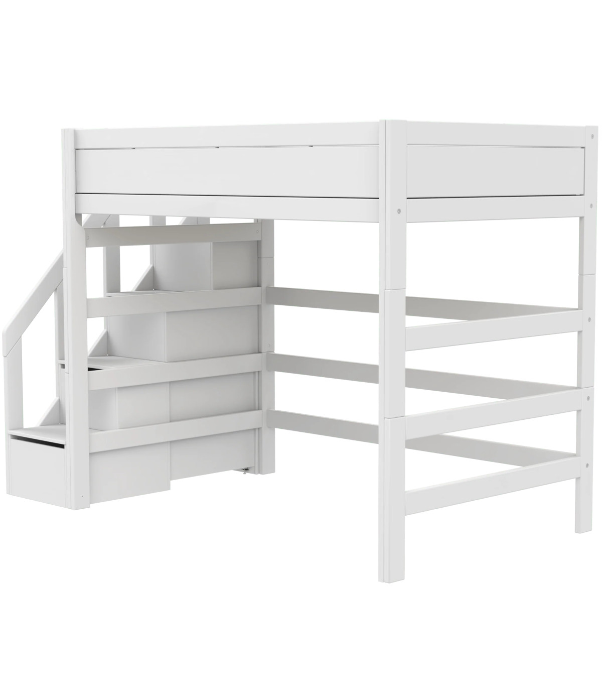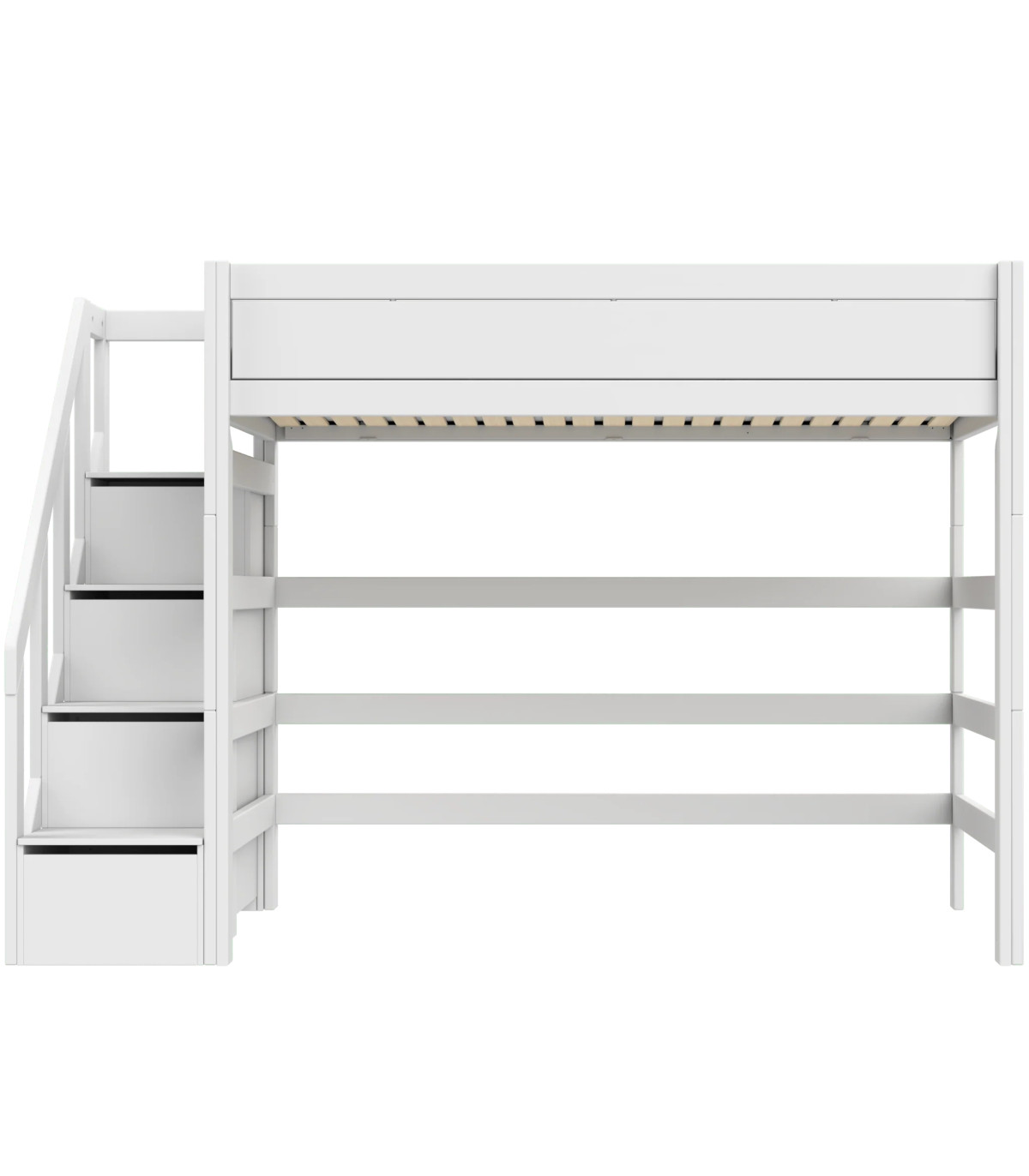 Lifetime Kidsrooms Hochbett 120 cm, mit Treppe, Premium Rollboden mit 23 Latten weiss
