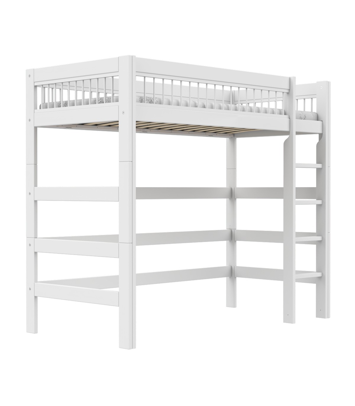 Unter dem Bett gibt es viel Platz für Stauraum oder die Einrichtung einer Lernumgebung. Sie können beispielsweise ein Regal für Bücher oder einen Schreibtisch mit grosszügiger Tischfläche wählen, der sich über die gesamte Länge des Bettes erstreckt. Alternativ bietet der Raum auch genügend Platz für einen Schreibtisch und einen Bürostuhl oder andere Aufbewahrungsmöbel.