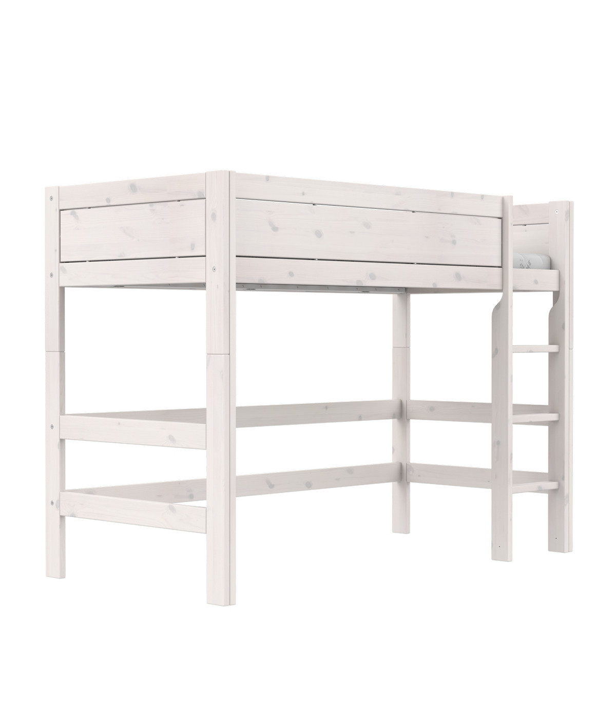 Lifetime Mittelhochbett 152 cm mit gerader Leiter und Premium Lattenrost Whitewash