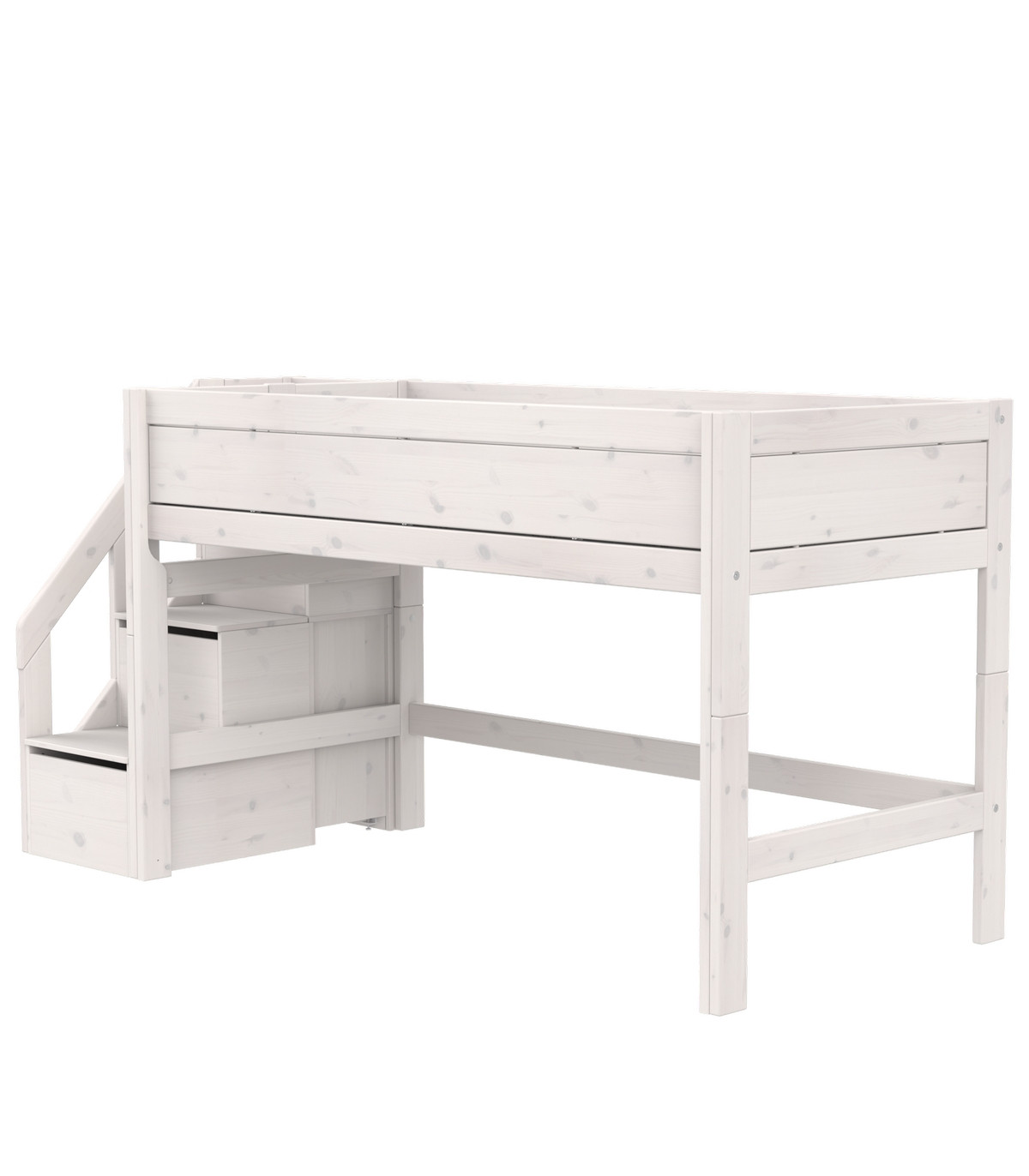 Lifetime Kidsrooms Halbhohes Bett mit Treppe und Deluxe Lattenrost 128 x 257 x 102 cm whitewash
