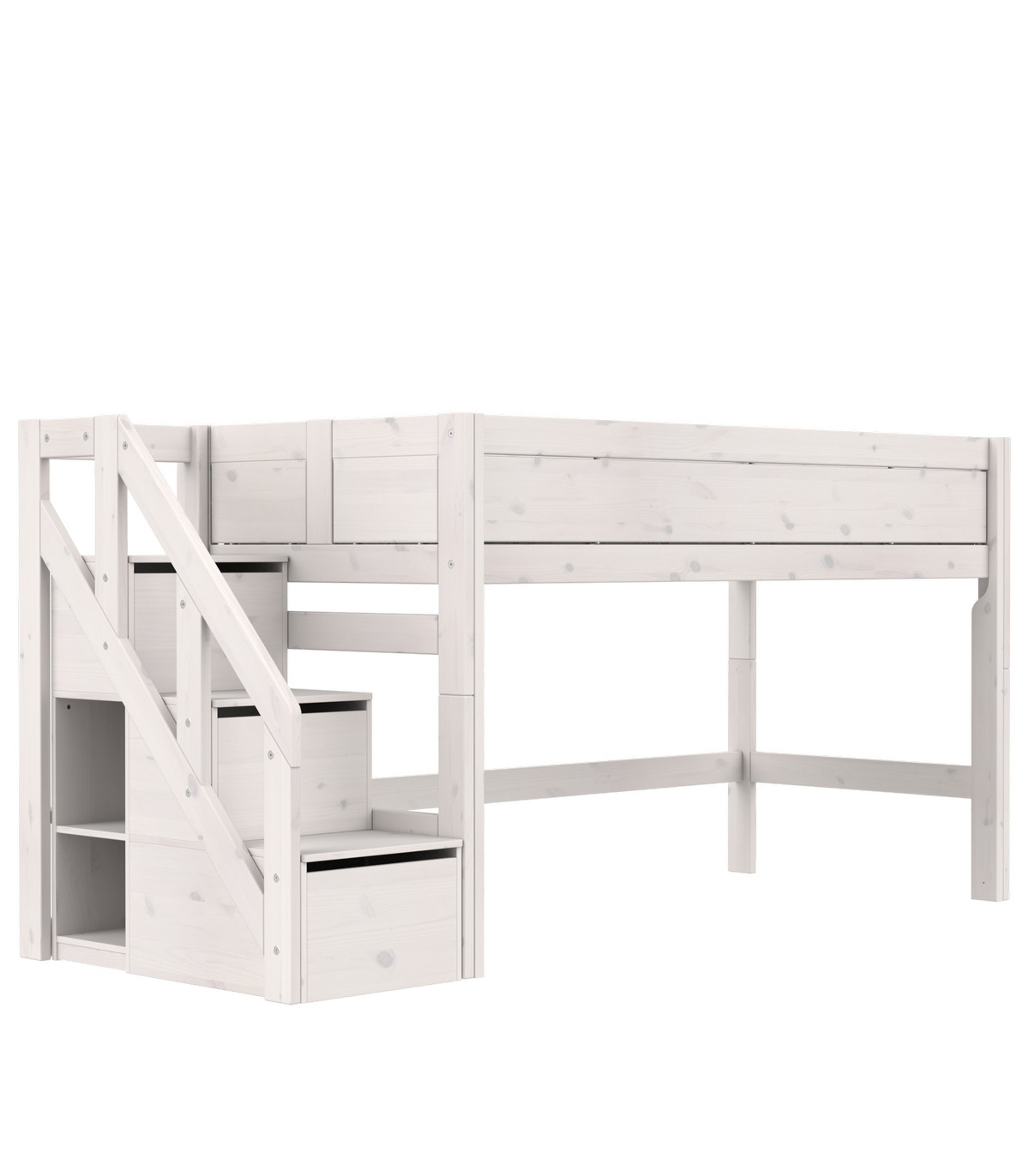 Lifetime Kidsrooms Halbhohes Bett mit Treppe und Premium Lattenrost whitewash - Das perfekte Hochbett für Spiel und Traum