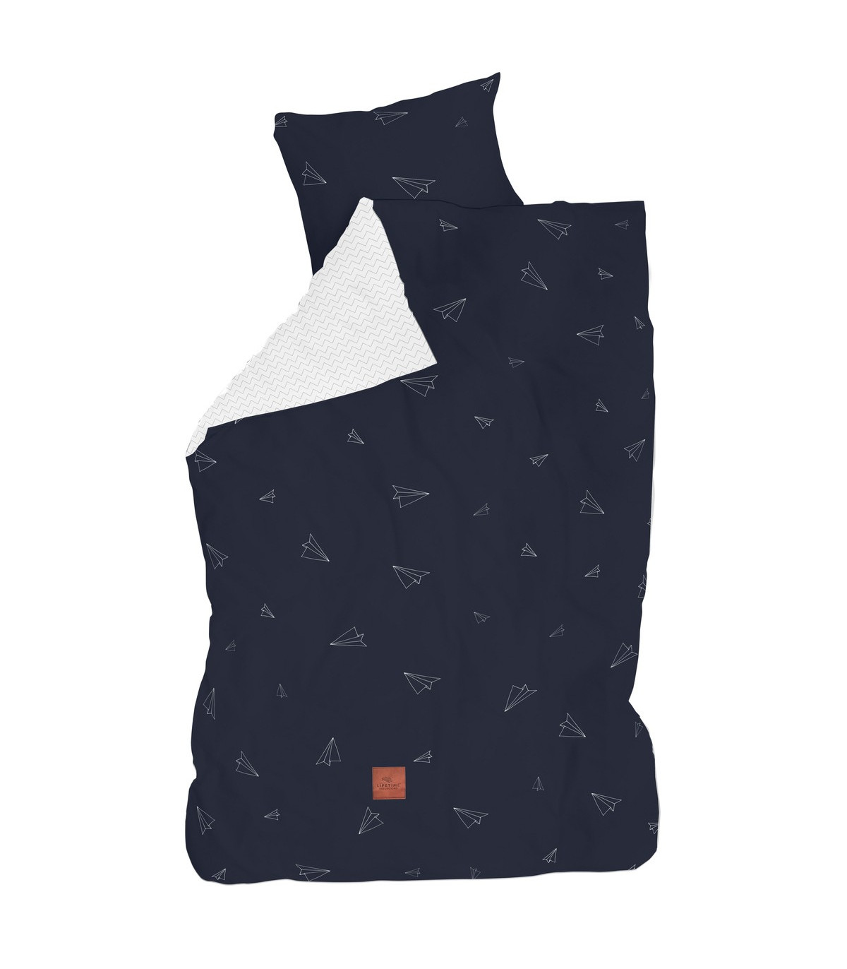 A bed linen in a timeless Scandinavian design with the pattern of a paper plane. All bed linen of the LIFETIME collections are 100% cotton and produced according to the Ökotex 100 standard.