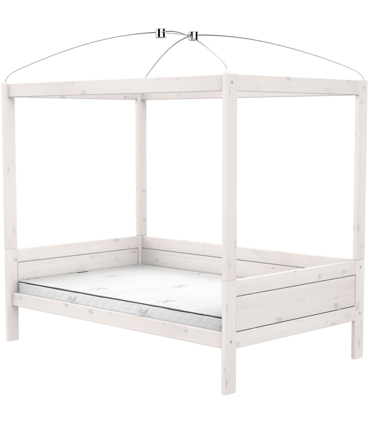 Lifetime Original four-poster bed 120 x 200 cm with deluxe slatted frame whitewash