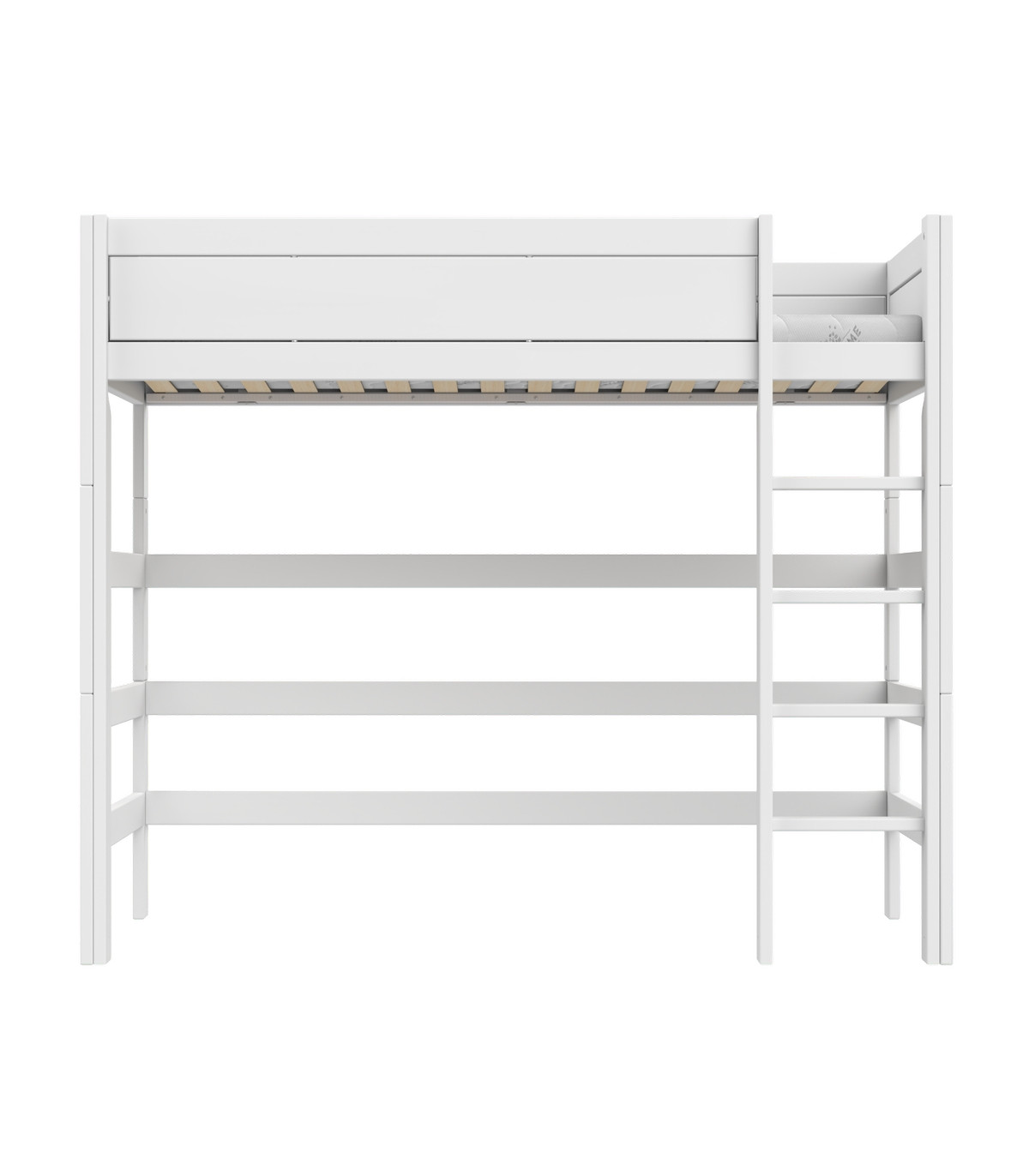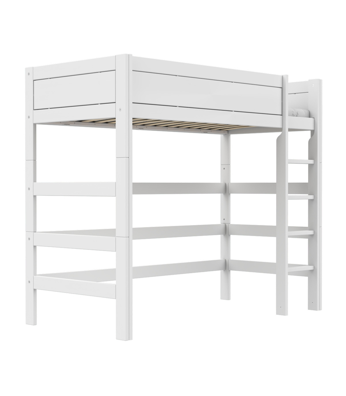 Lifetime High Bed 177 cm with straight ladder and premium slatted base, white