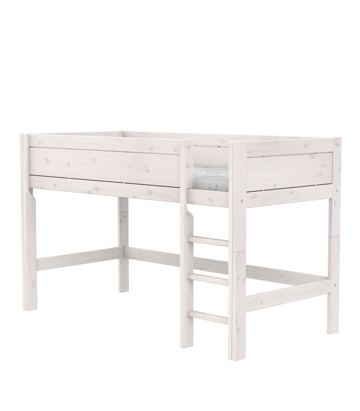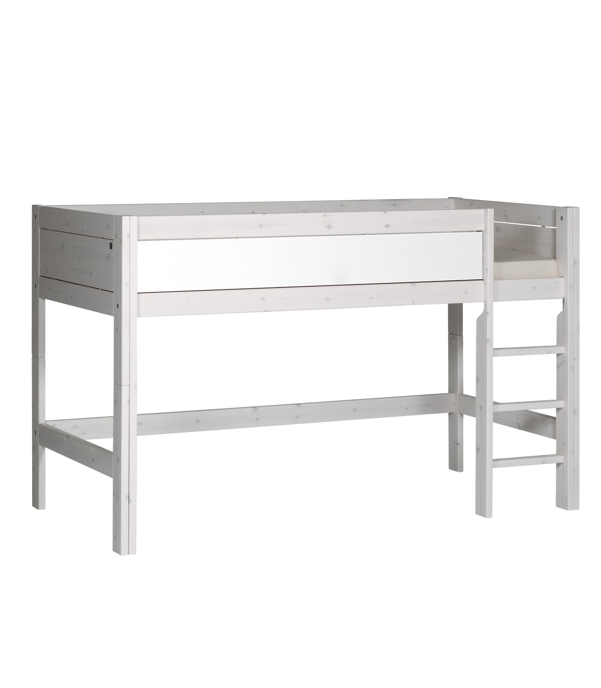 The half height bed offers plenty of space under the bed for playroom, storage, reading etc. There are also a number of game curtains for this bed to create a cave underneath. The straight ladder takes up less space in the room than the sloping ladder.