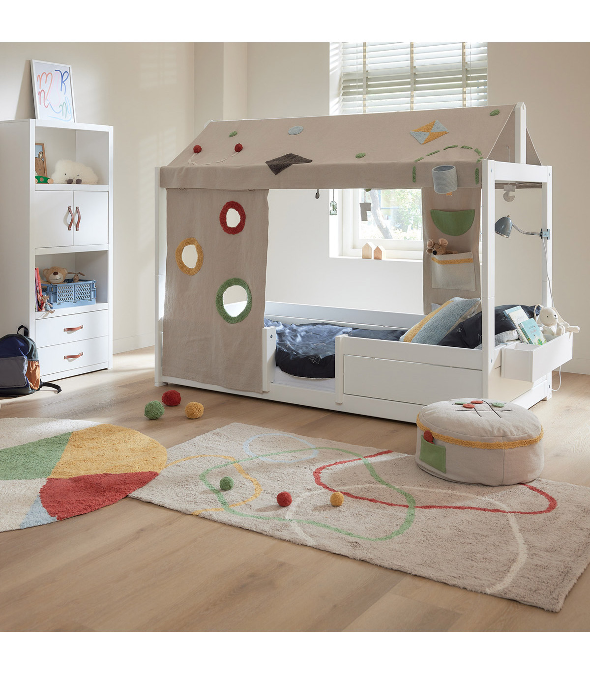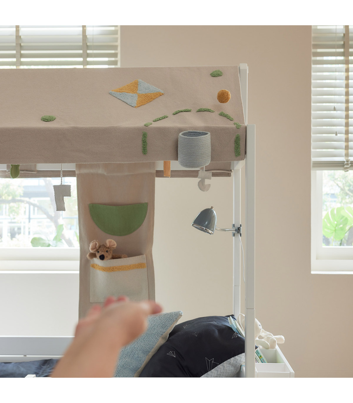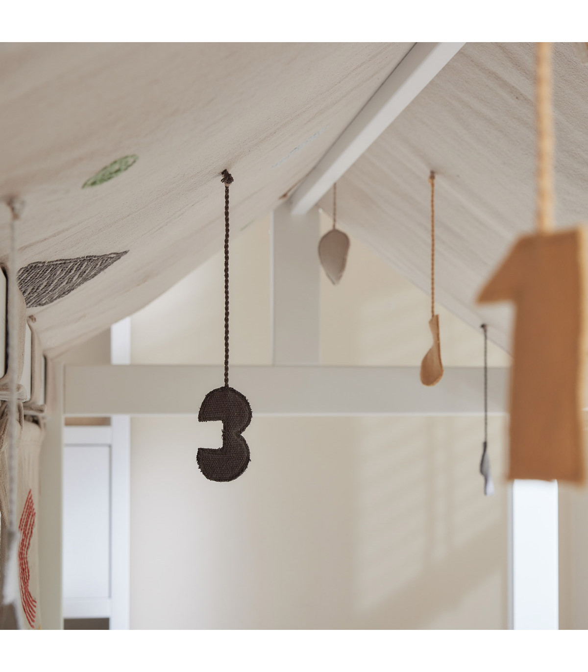The number tags from 0 to 9 that dangle beneath the canopy playfully promote your child's motor skills. Additionally, the integrated basket with pom-pom balls invites practice and play. Make the most of your interior space and create a playful, sporty universe that sparks the imagination.