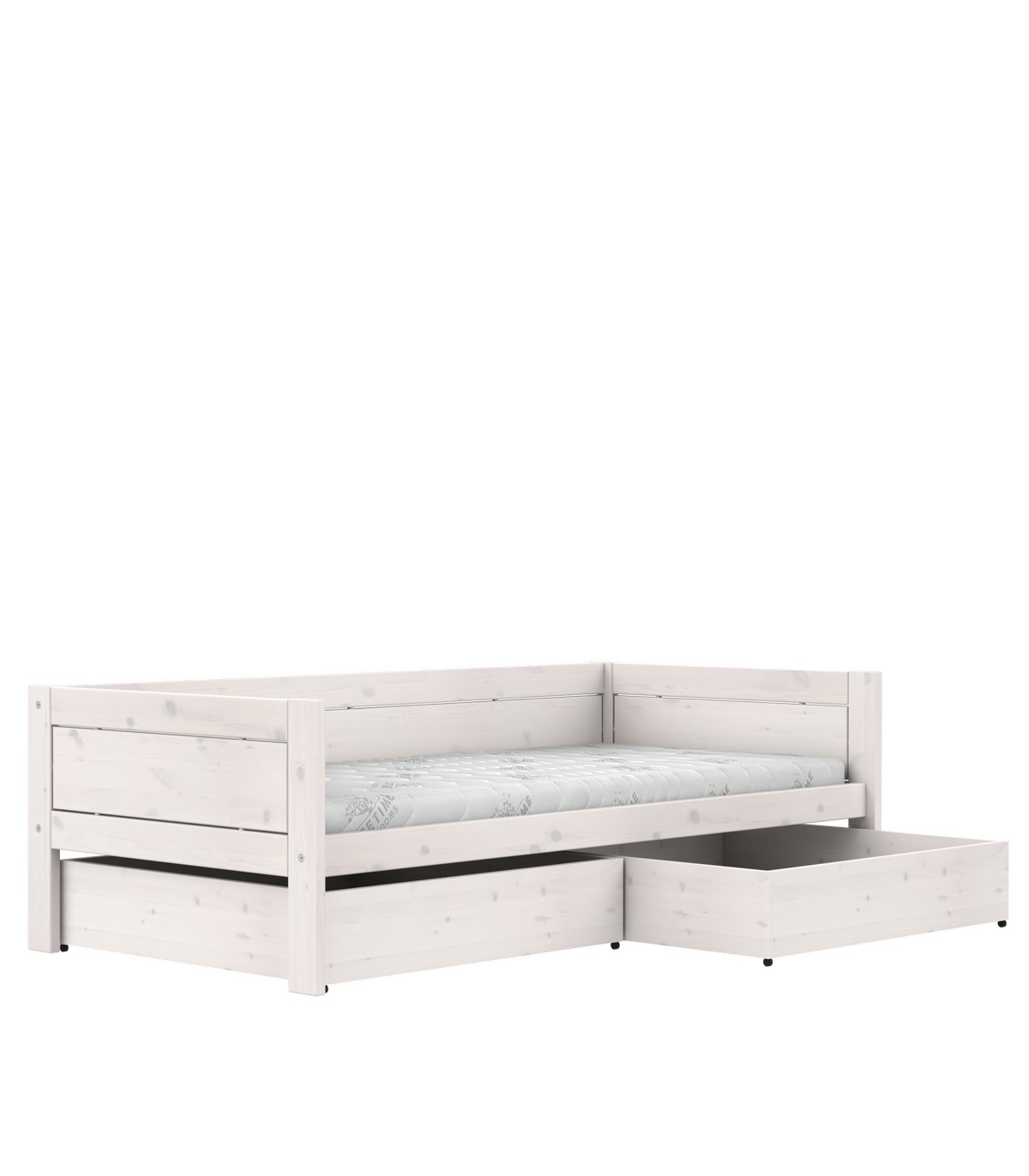 The mattress measures 90 x 200 cm and is therefore ideal for younger children, teenagers, or adults. By using conversion parts, the bed can easily be transformed into a higher model, expanded with a roof structure, or decorated with accessories.