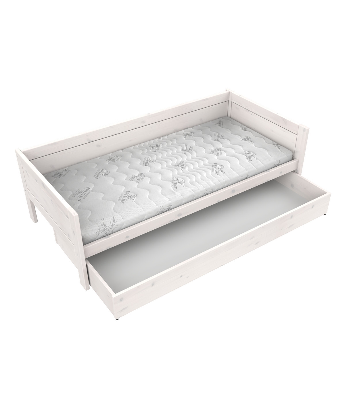 Lifetime Base Bed 90x200 cm with Premium Rolled Slat Frame in Whitewash