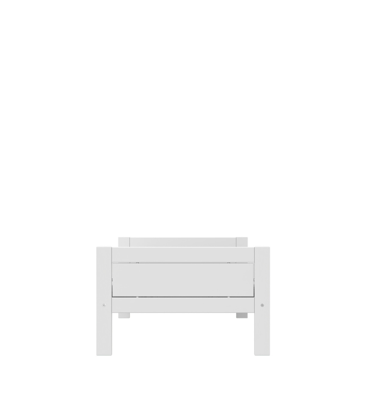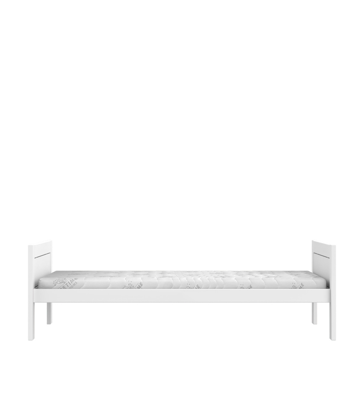 This single bed is a simple teenage bed in normal size, here in contrast to the basic bed Art. 610 or 6101 without back part, to make it accessible even from 2 sides. It can still be equipped with an attachable back part, Art. 624 + 626 and can also be integrated into the LIFETIME bed system as a basic bed together with the back part. The bed is equipped as standard with a deluxe slatted frame frame.