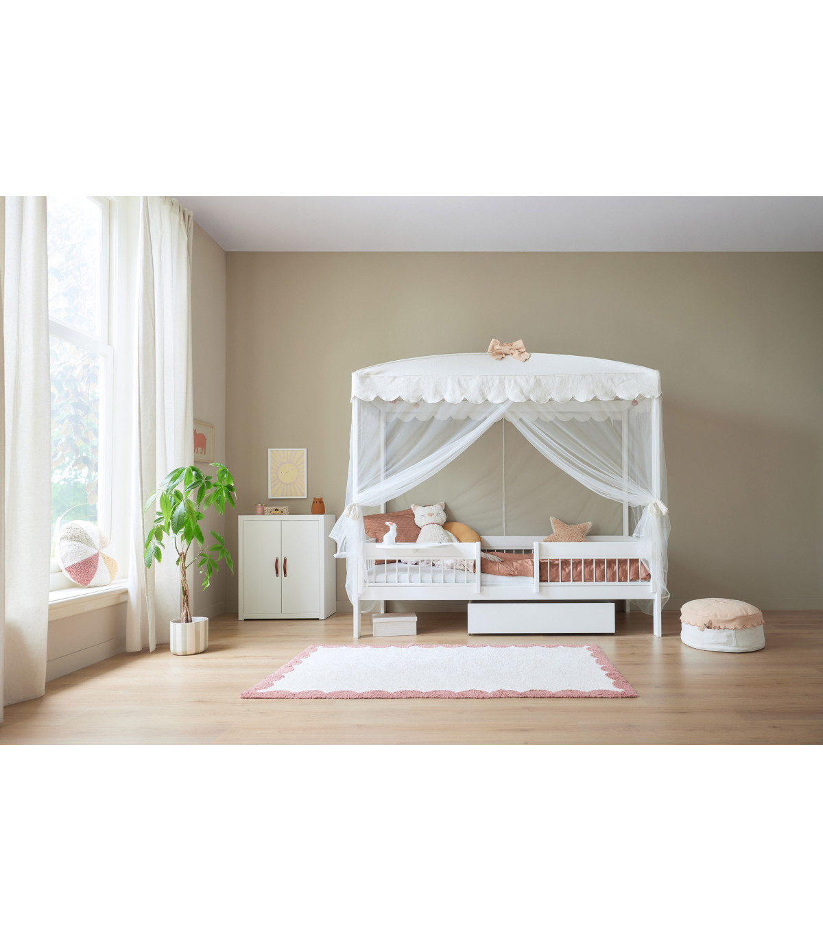 Discover the enchanting Lifetime Single Bed with Cat & Bow Canopy, a bed that's not only functional but also a real eye-catcher in any child's room. Measuring 90 x 200 cm, it offers ample space for sweet dreams and cozy nights. The open design from the LIFETIME BREEZE collection, combined with white metal bars, gives the bed a light, playful look perfect for any child's bedroom.