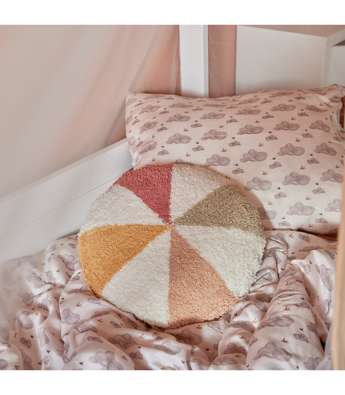 Pour le nettoyage, nous recommandons de laver l'oreiller séparément à une température maximale de 30 °C et de ne pas utiliser de javel ni d'assouplissant. Ainsi, l'oreiller restera beau longtemps et conservera sa forme. Apportez une touche de magie à la chambre d'enfant avec cet oreiller charmant !