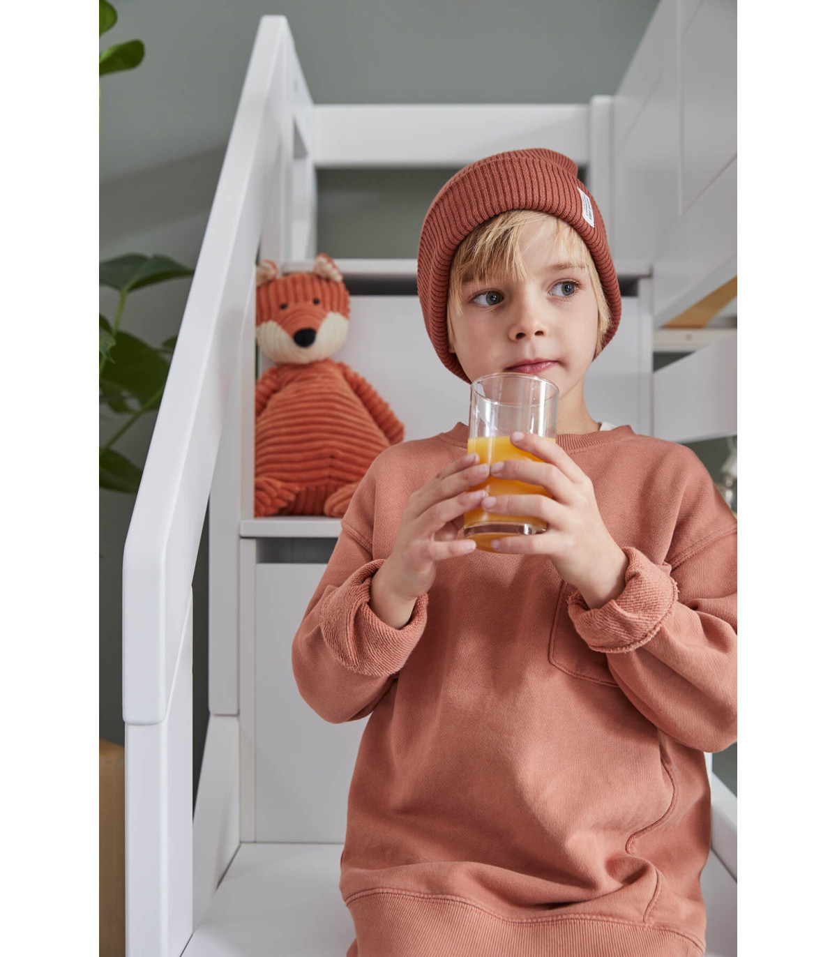 Le lit peut être positionné avec l'escalier à gauche ou à droite et peut même être transformé en lit simple si nécessaire. Ainsi, le lit grandit avec votre enfant et s'adapte de manière flexible aux différents concepts d'aménagement.