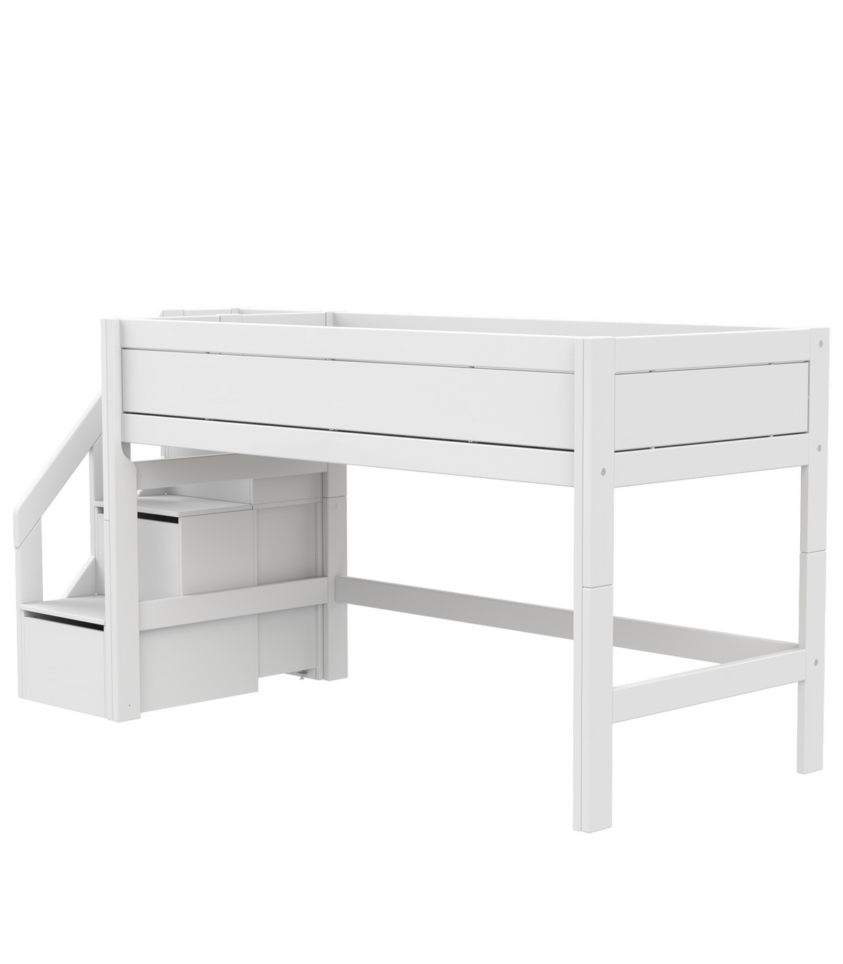 Lifetime Lit mi-hauteur mezzanine avec escalier et sommier Premium, blanc