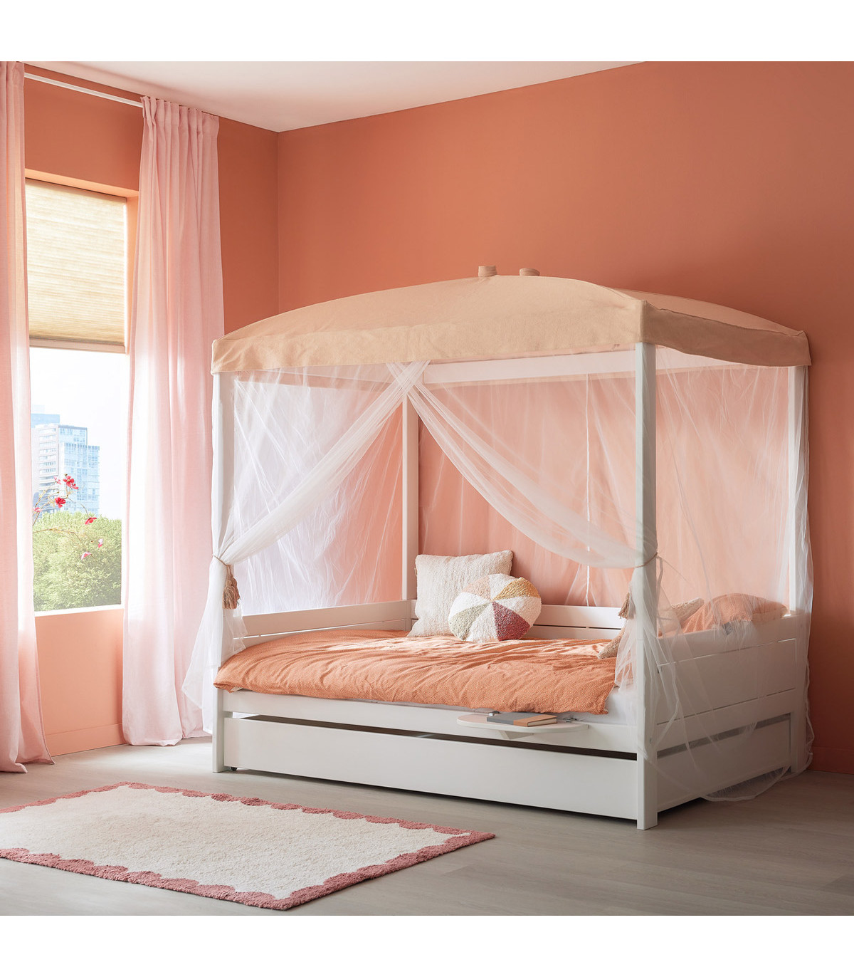 Lifetime lit simple avec ciel de lit Sweet Pink 120 x 200 cm avec sommier à lattes premium blanc