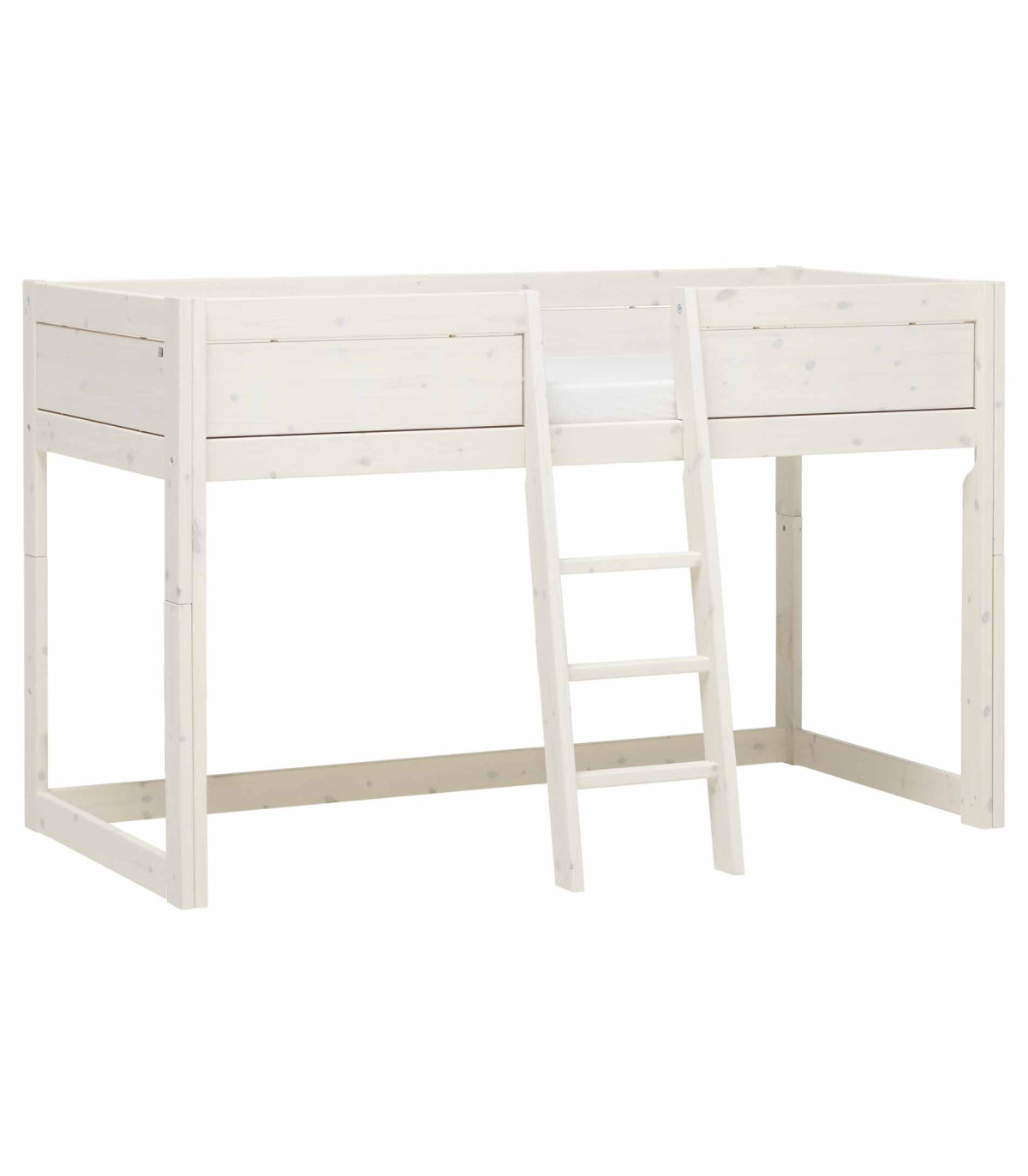 Version 3: Lit à mi-hauteur où le cadre du ciel a été converti en base. Une échelle et une protection contre les chutes sont déjà disponibles dans le lit 4 en 1.