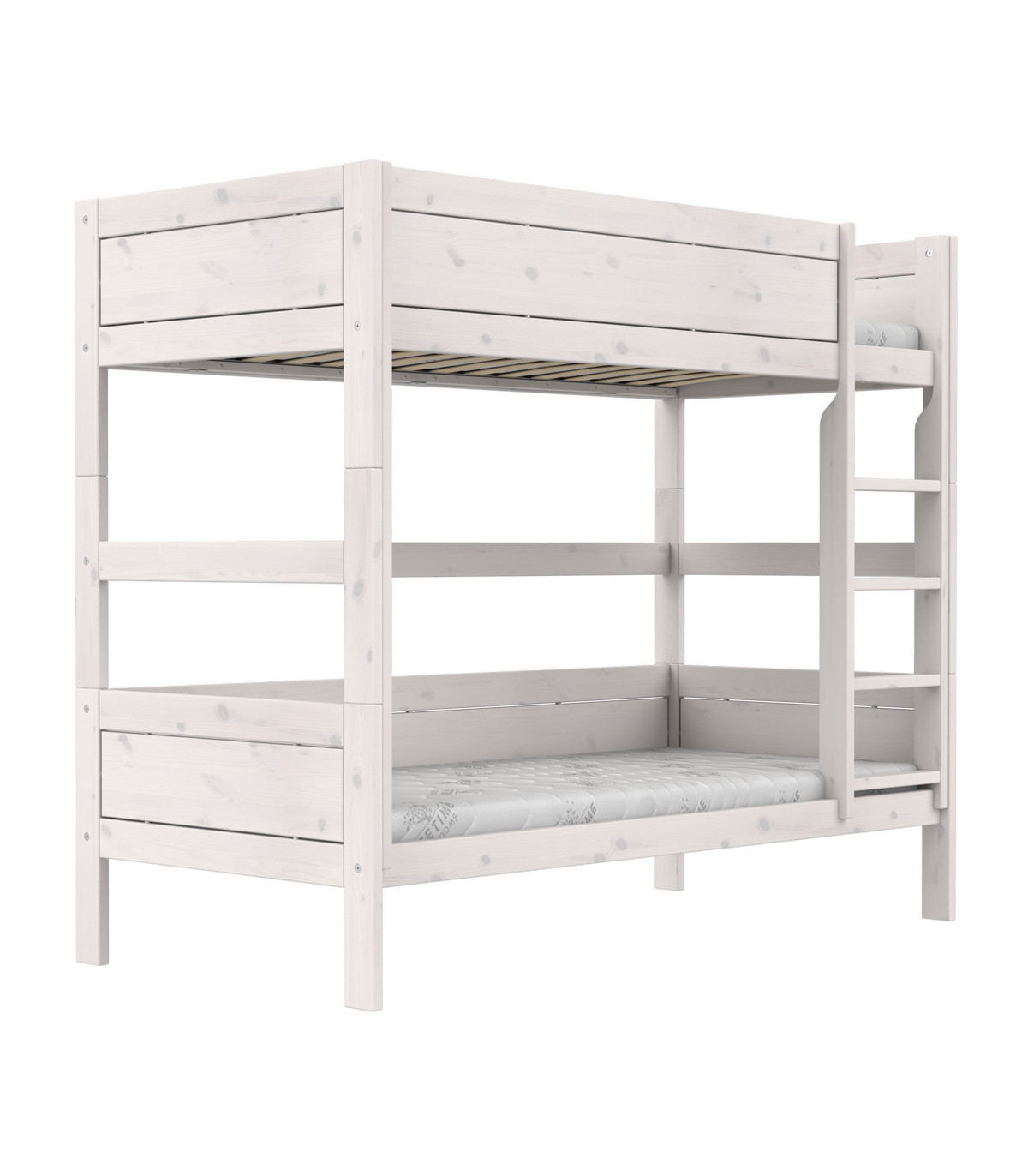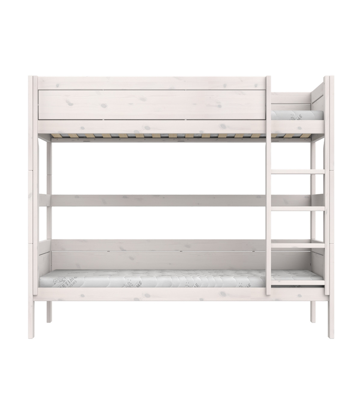 Lit superposé Lifetime avec échelle droite, sommier à lattes premium whitewash