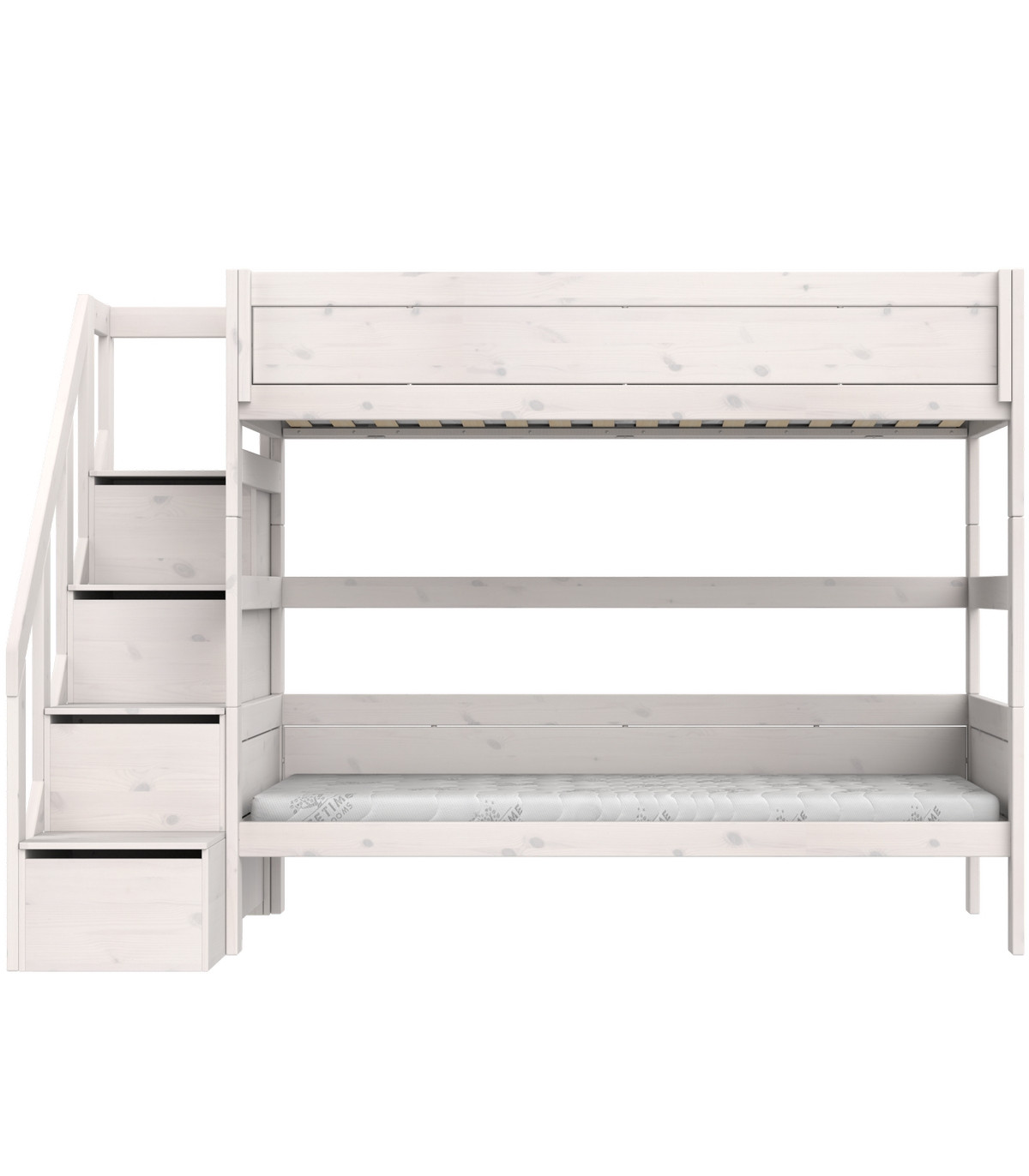 Lit superposé Lifetime Kidsrooms avec escalier, sommier à lattes Premium, whitewash