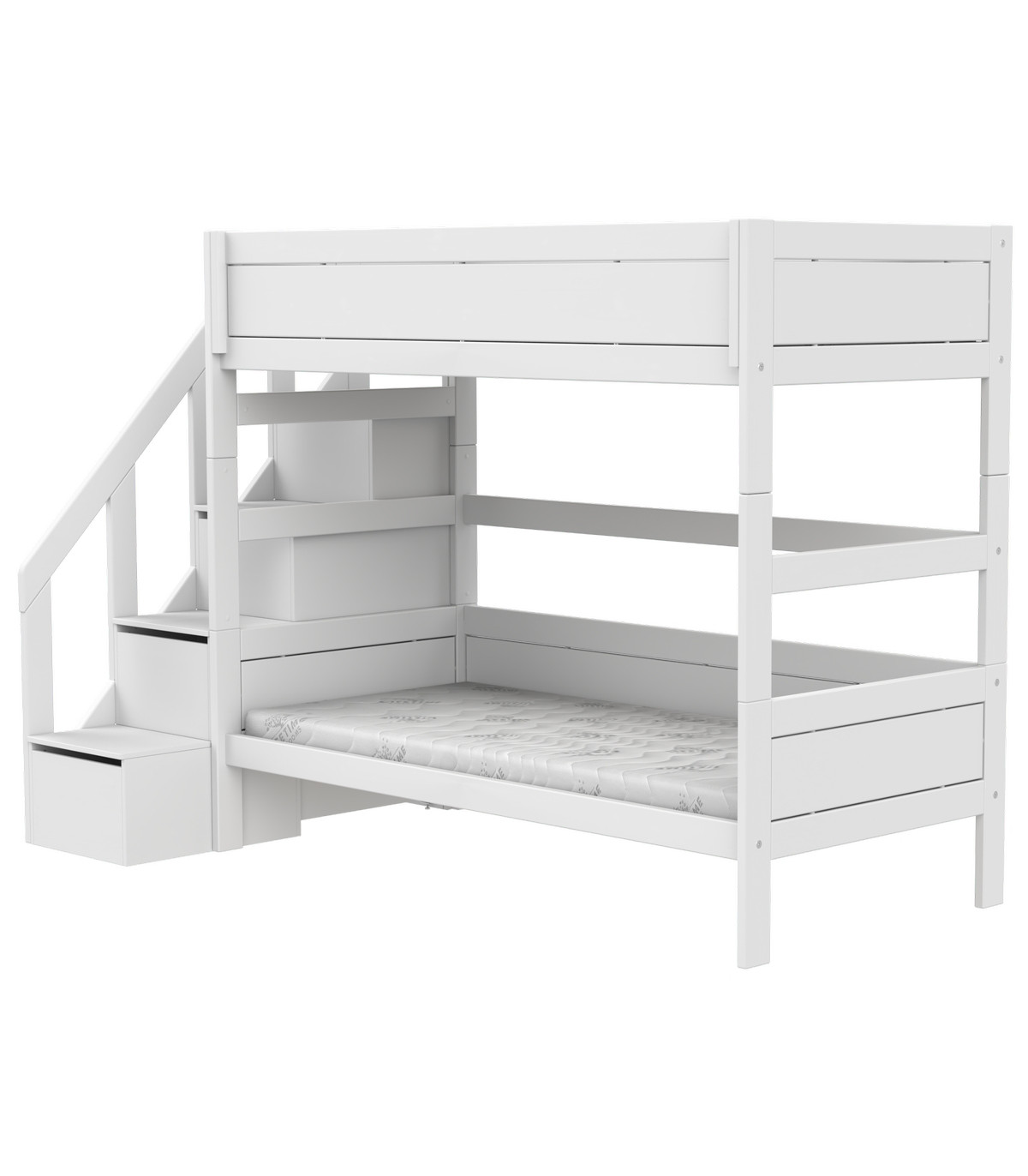 Lit superposé Lifetime Kidsrooms avec escalier, sommier à lattes Premium, whitewash