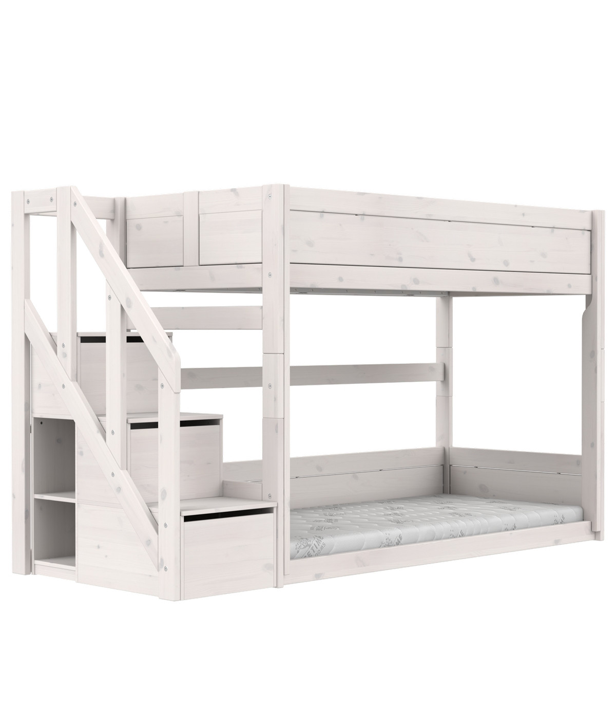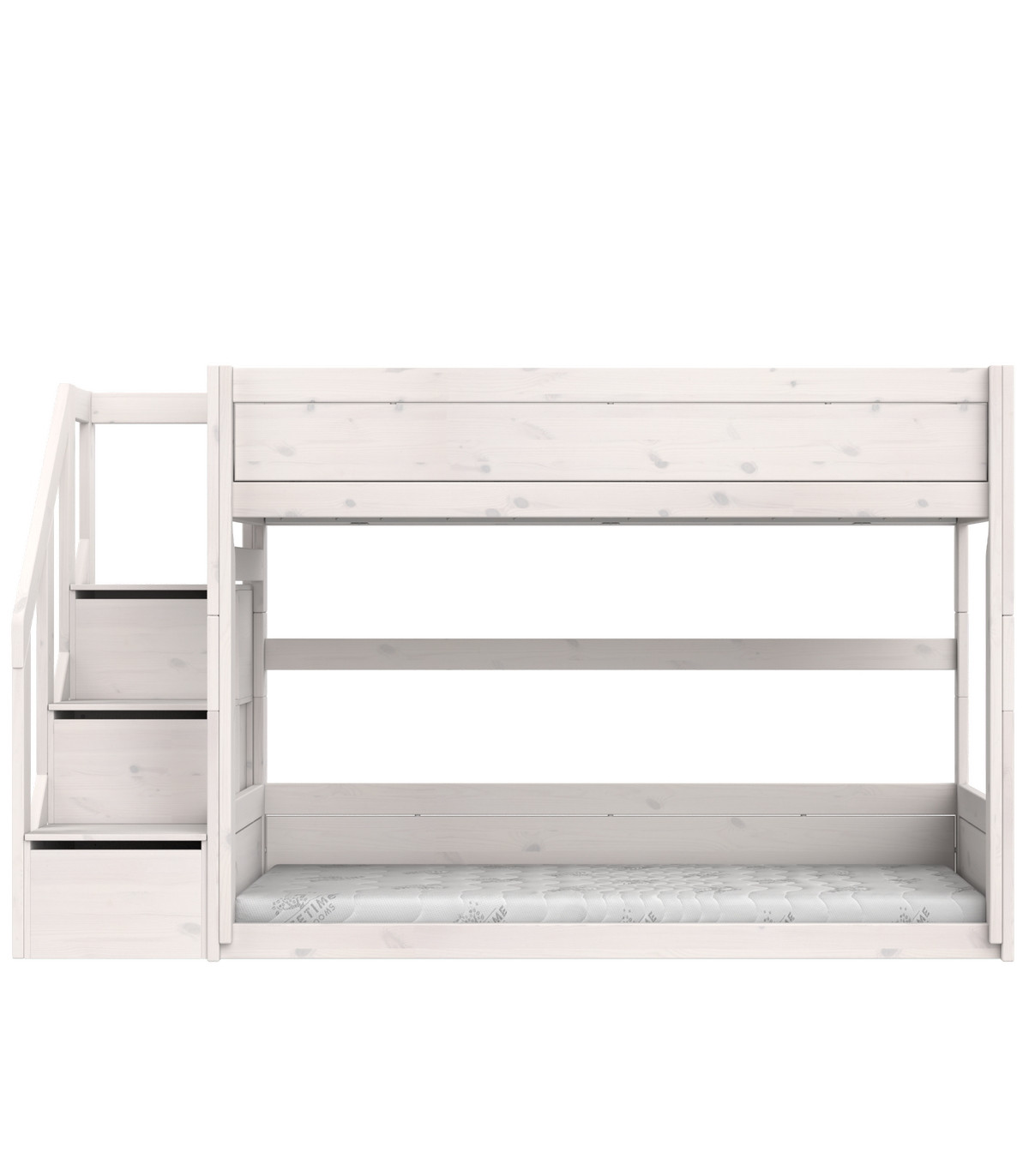 Lifetime lit superposé bas avec escabeau 90 x 200 cm, sommier premium whitewash
