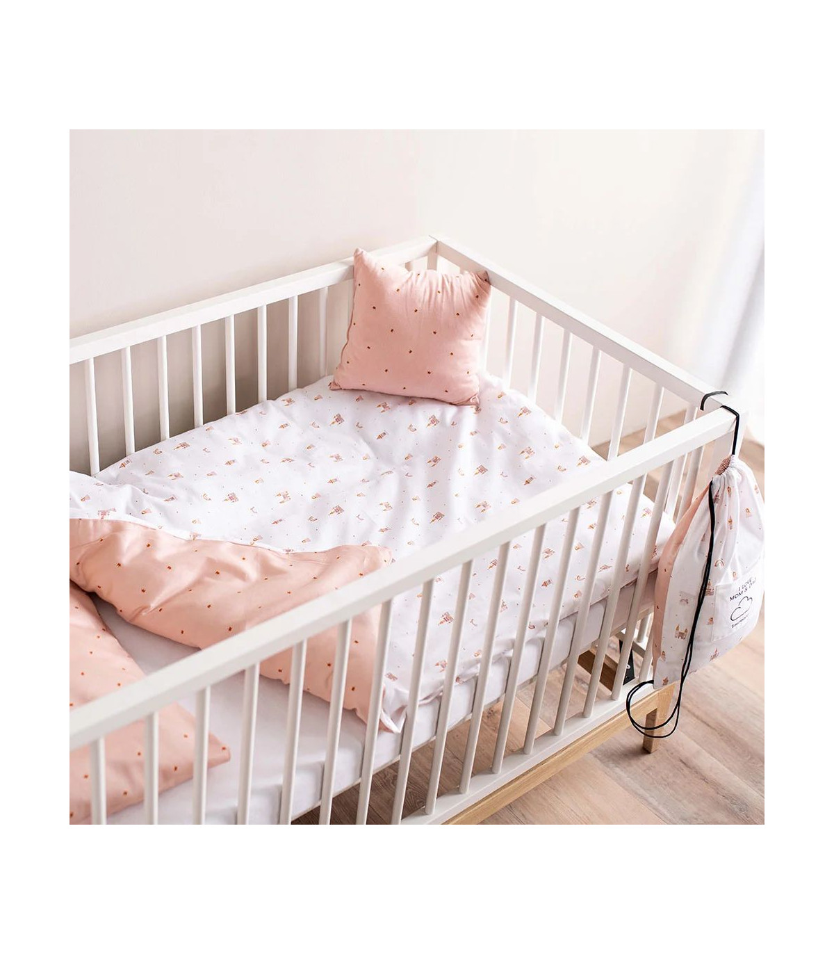 Il set di due pezzi è particolarmente morbido e delicato sulla pelle del bambino. Il copripiumino è dotato di una pratica cerniera all'estremità dei piedi, mentre la federa è dotata di una chiusura a hotel che la rende facile da indossare e da togliere.