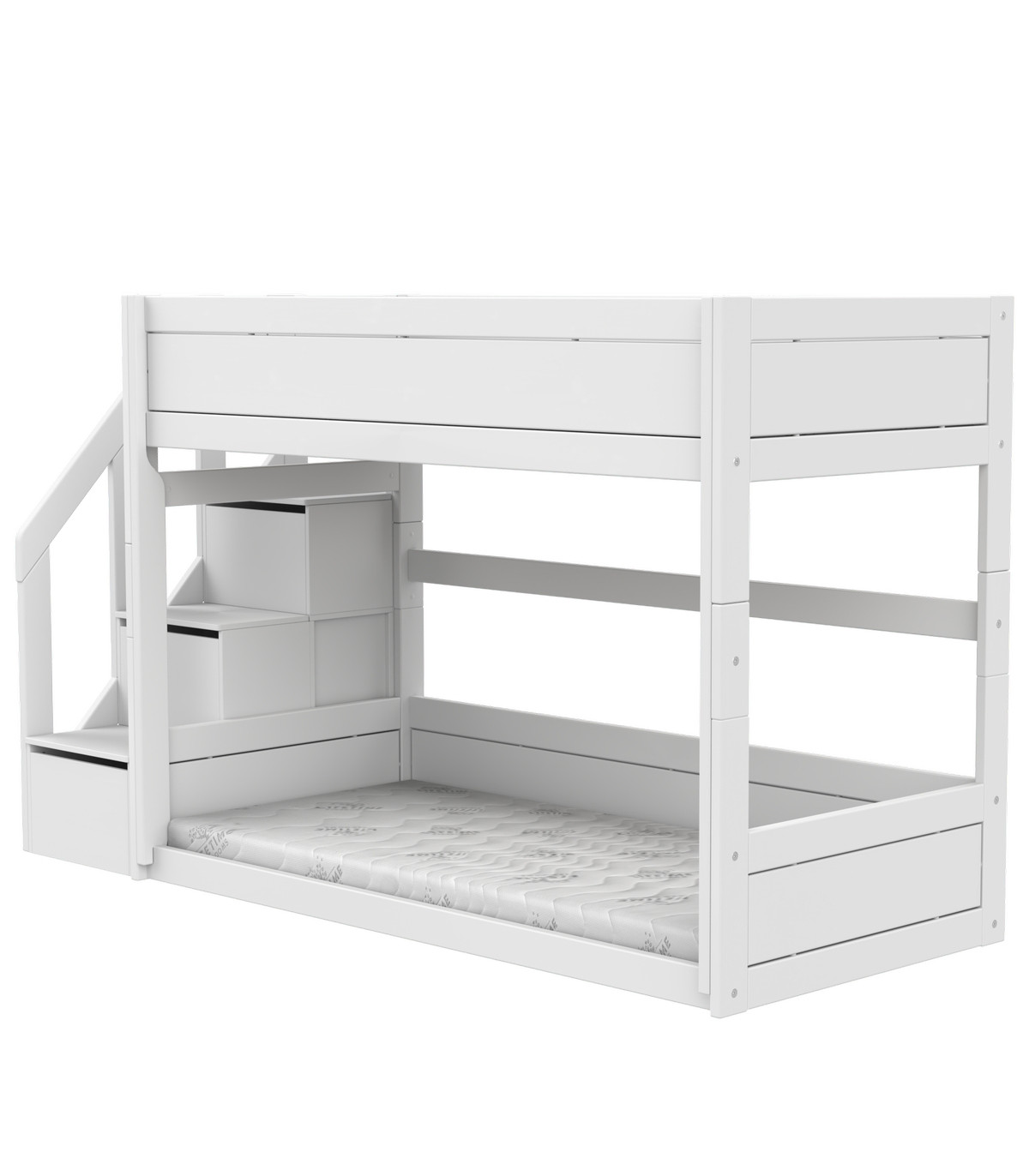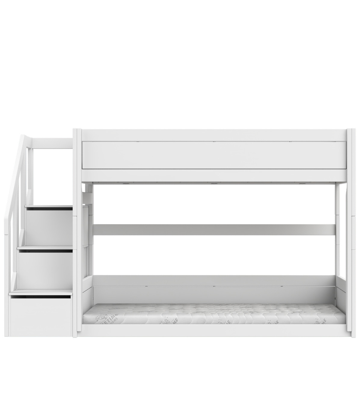 Anche se i vostri bambini condividono una stanza o amano dormire insieme, il nostro letto a castello offre una soluzione intelligente, salvaspazio e funzionale. È dotato di una scala intelligente che offre sicurezza extra per salire nel letto superiore e offre anche molto spazio di archiviazione - ogni gradino può contenere giocattoli e altri tesori.