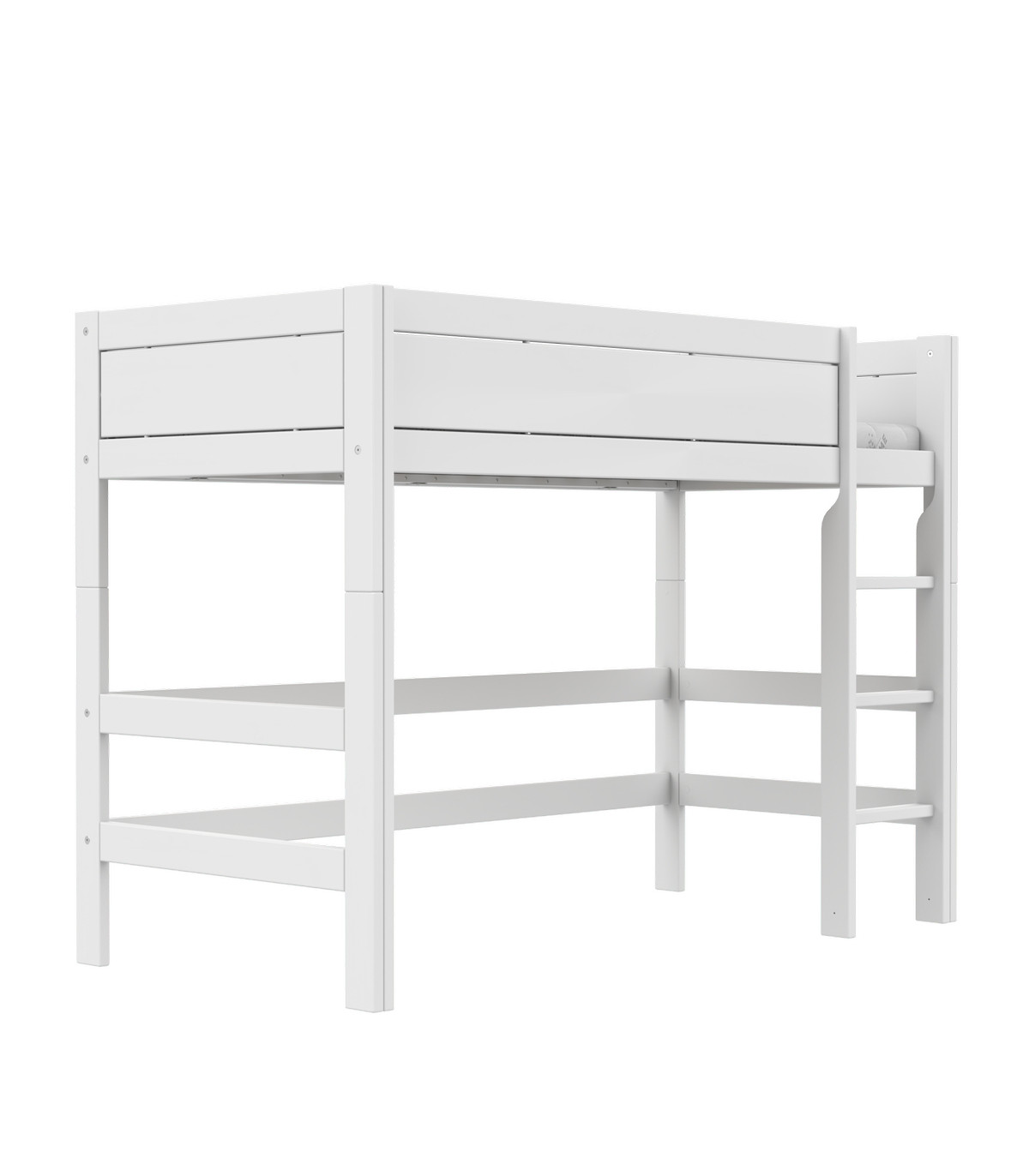 Letto medio-alto Lifetime da 152 cm con scala dritta e rete a doghe premium, bianco