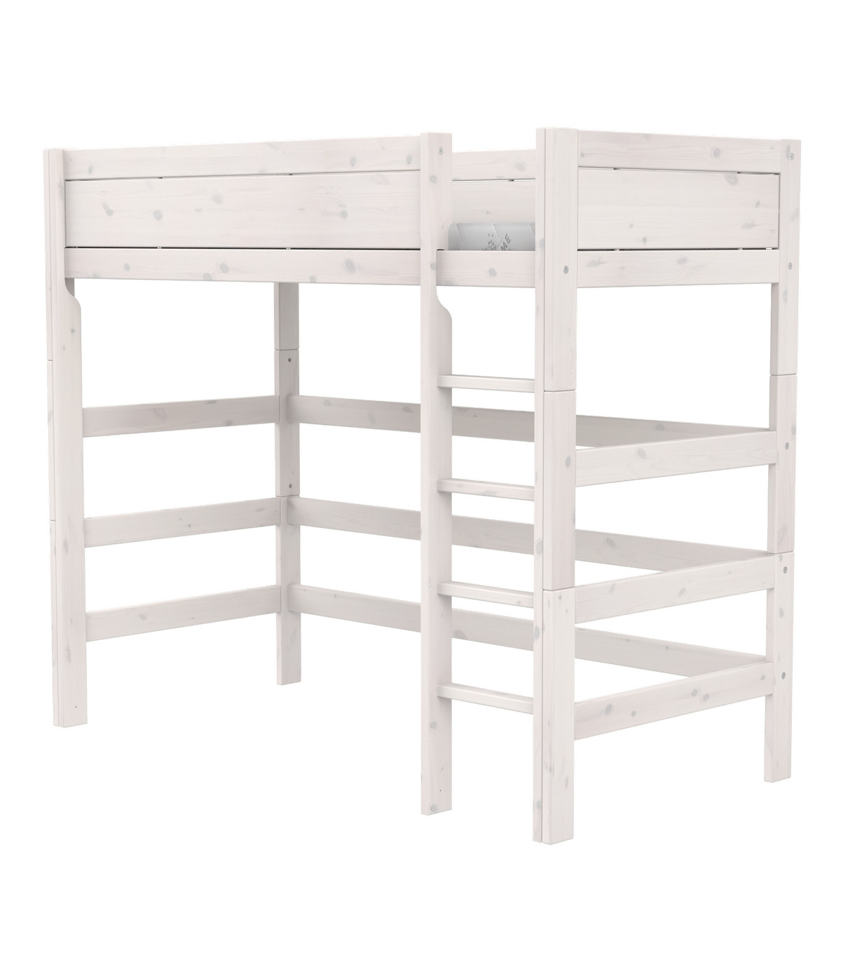 Letto a soppalco Lifetime 177 cm con scaletta dritta e rete a doghe premium, whitewash