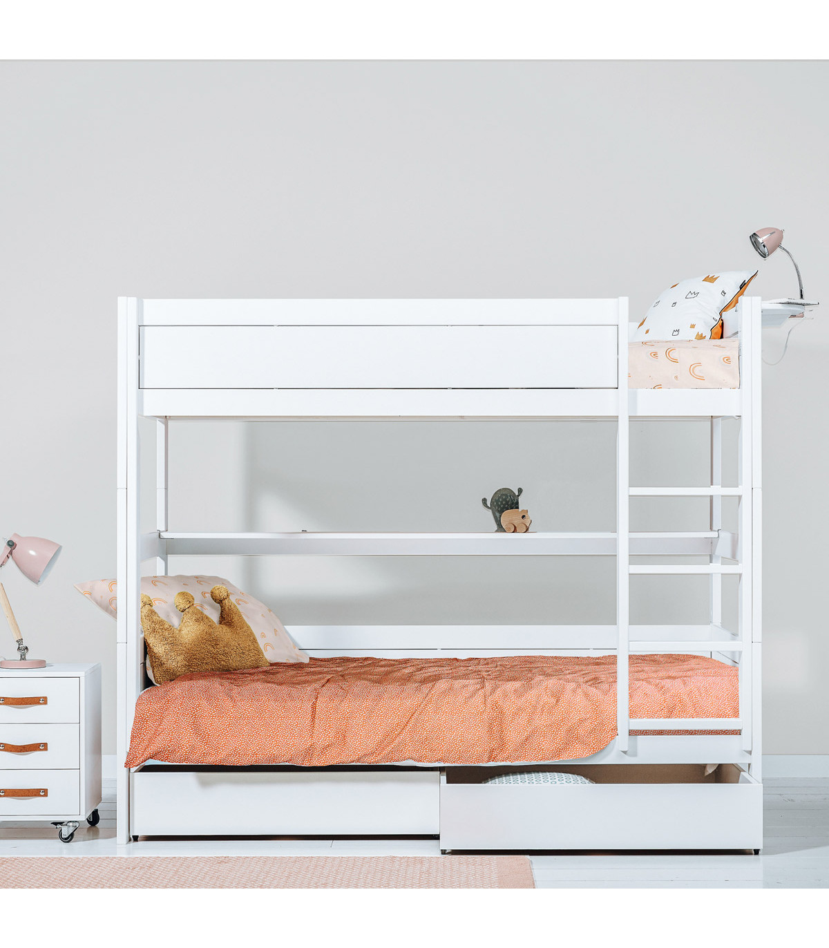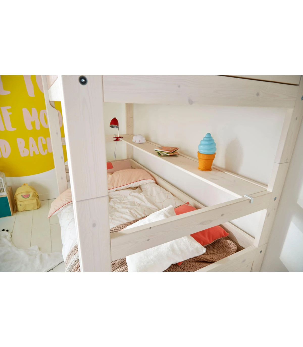 Letto a castello Lifetime con scaletta dritta, rete a doghe premium bianco