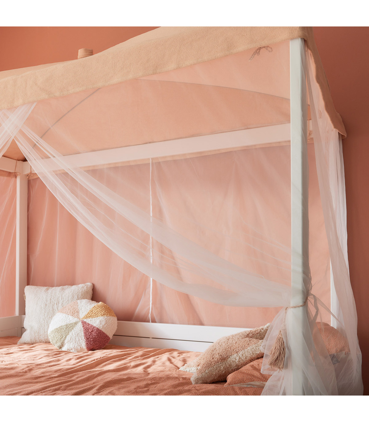 Lifetime letto singolo con baldacchino Sweet Pink 120 x 200 cm con base a doghe premium whitewash