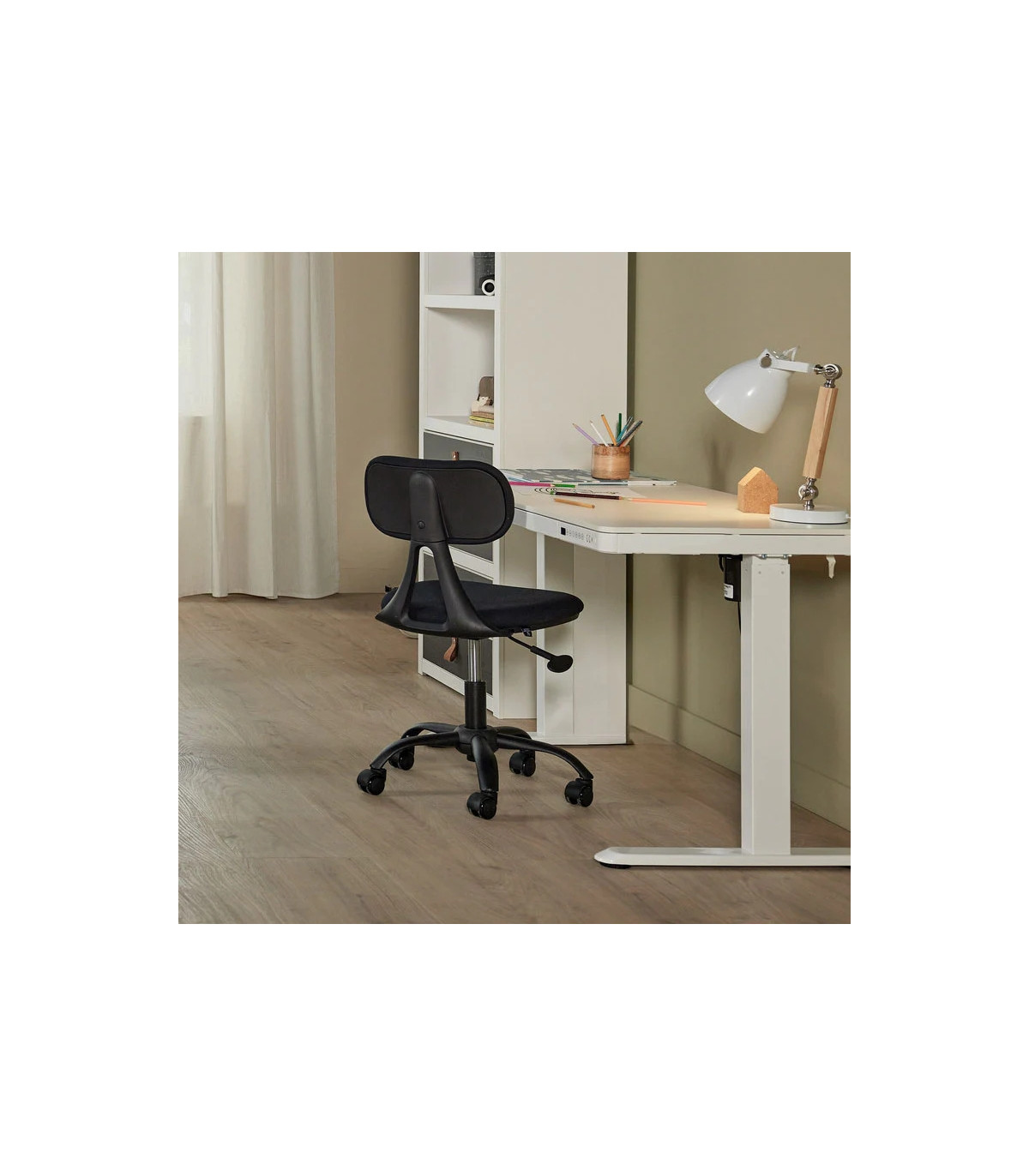 La solida costruzione in metallo e il piano in truciolato con rivestimento in melamina garantiscono durata e un look elegante e minimalista che si adatta a qualsiasi cameretta.